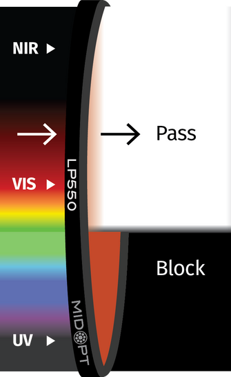 Often referred to as a “sharp-cut” filter, Longpass Filters are specifically designed to pass a broad spectrum of longer wavelength light while blocking shorter wavelengths.