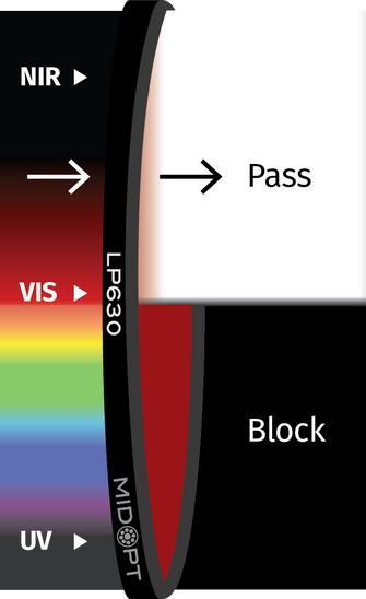 Often referred to as a “sharp-cut” filter, Longpass Filters are specifically designed to pass a broad spectrum of longer wavelength light while blocking shorter wavelengths.