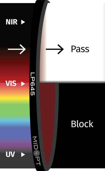 Often referred to as a “sharp-cut” filter, Longpass Filters are specifically designed to pass a broad spectrum of longer wavelength light while blocking shorter wavelengths.