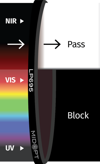 Often referred to as a “sharp-cut” filter, Longpass Filters are specifically designed to pass a broad spectrum of longer wavelength light while blocking shorter wavelengths.