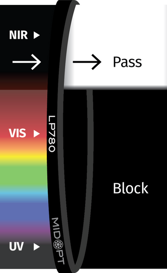 Often referred to as a “sharp-cut” filter, Longpass Filters are specifically designed to pass a broad spectrum of longer wavelength light while blocking shorter wavelengths.