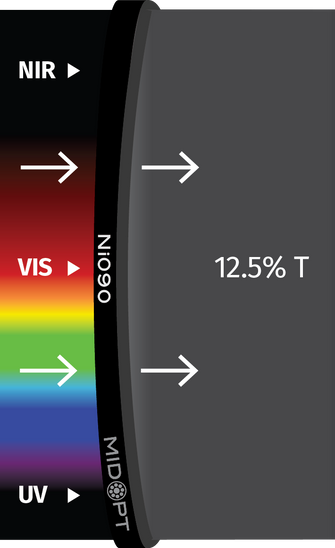 MidOpt Neutral Density Filters serves as “sunglasses” for your system and can be used with monochrome or color cameras. Designed to reduce light intensity neutrally over a specific wavelength range without affecting image color or contrast.